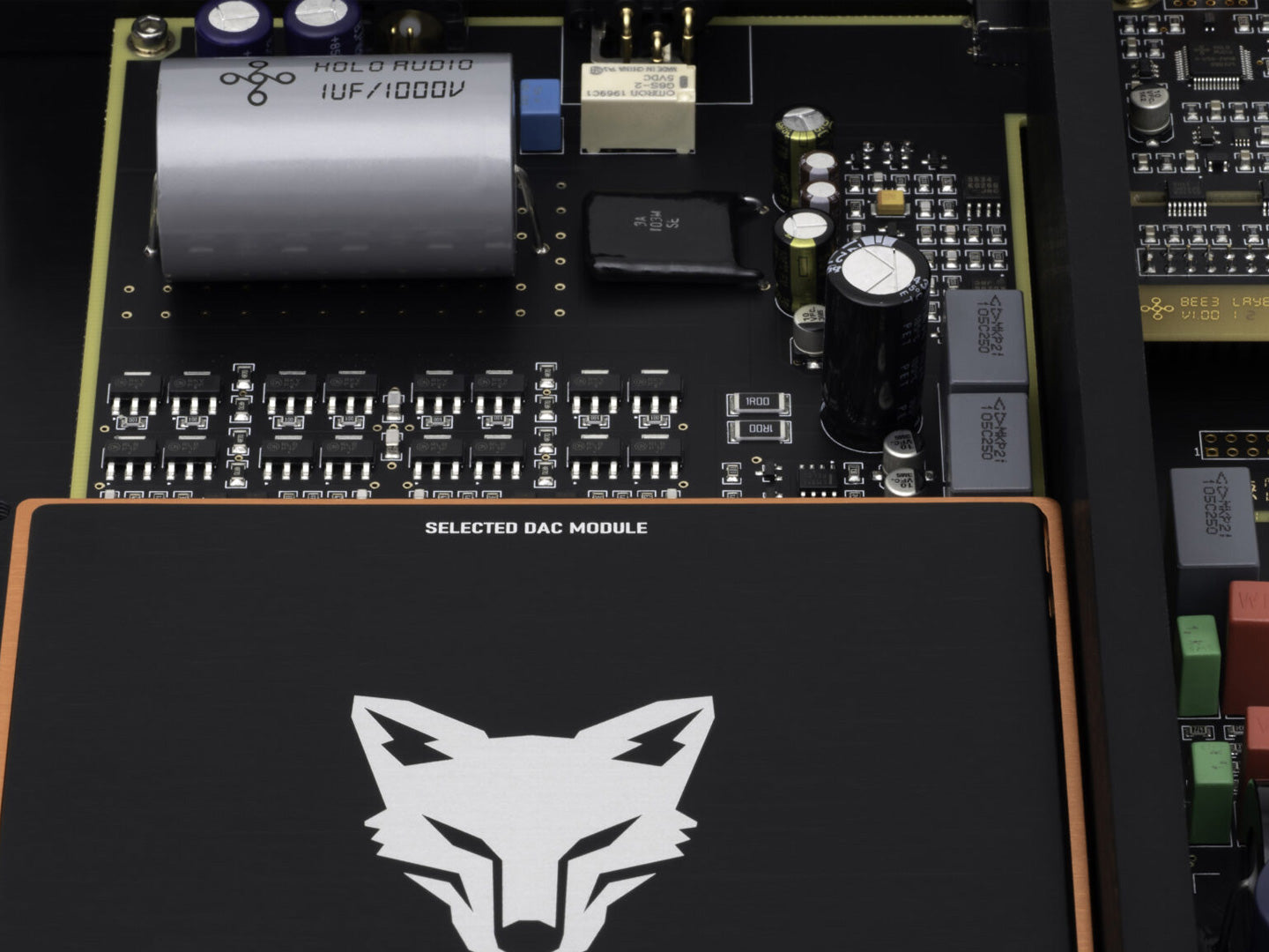 - CNC Black/Copper shield DAC Module Covers on each module with laser etched KTE logos. Only KTE model.