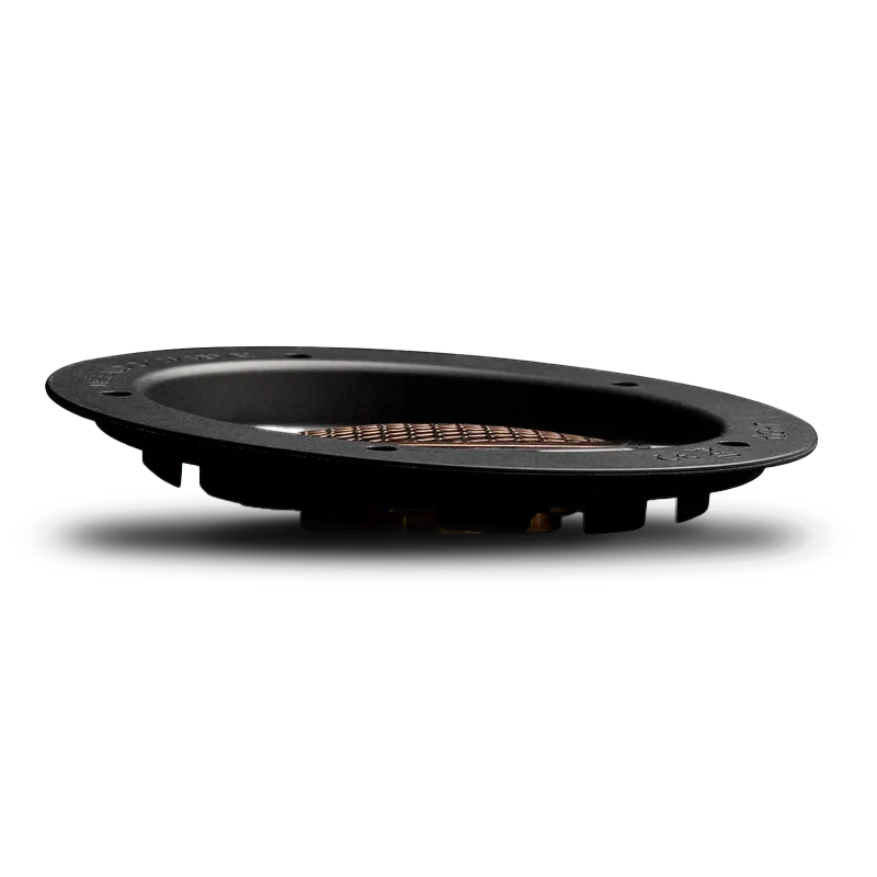 The torus surrounding the dome is composed of Beryllium-coated semicrystalline polymer, measuring 22 microns in thickness. By applying the Beryllium coating through Physical Vapor Deposition (PVD), we increased the stiffness and durability of the driver, while still keeping it light enough to achieve a fast transient response. These qualities are also enhanced through the corrugations on the torus, which are precisely carved at a 45.5° angle.